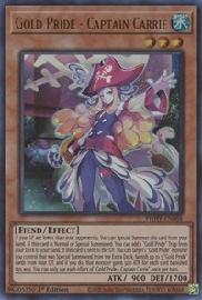 If your LP are lower than your opponents You can Special Summon this card from your hand If this card is Normal or Special Summoned You can add 1 Gold Pride Trap from your Deck to your hand If this card is sent to the GY You can target 1 Gold Pride monster you control that was Special Summoned from the Extra Deck banish up to 3 Gold Pride cards from your GY and if you do that monster gains 500 ATK for each card banished this way You can only use each effect of Gold Pride Captain Carrie once per