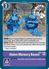 Main Return 1 purple Digimon card from your trash to your hand Then place this card in your battle areabrMain Delay emTrash this card in your battle area to activate the effect below You cant activate this effect the turn this card enters playembr Gain 2 memory