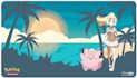 The playmat for the Pokémon Trading Card Game features vibrant, full-color artwork of Lillie and Clefairy. Made with a soft fabric top, playmats provide a safe gameplay surface, and a non-slip rubber backing keeps the playmat in place. With dimensions of approximately 24 in. x 13.5 in., a playmat also makes an excellent oversize mousepad for home or office.